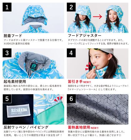反射パイピングが特徴でキッズ、ジュニアボーダーには特におススメしたいウェアです