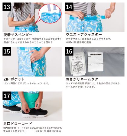 ・ウエストアジャスター:両脇のタブでウエスト周りを調整可能